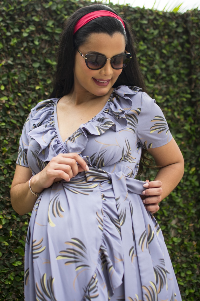 El Vestido Wrap Up con Vuelos a Media Pierna de Bloomy Maternity es una prenda pensada especialmente para acompañarte en cada etapa del embarazo y también durante la lactancia. Su diseño cruzado estilo wrap se adapta perfectamente al crecimiento del vientre, brindando comodidad sin perder estilo, mientras que los vuelos le añaden un toque femenino y elegante que realza tu silueta.